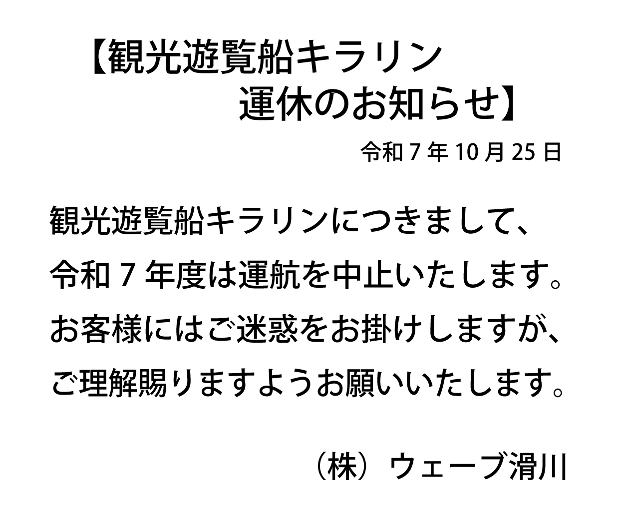 【おしらせ】まことに申し訳ございません。ただいまクルージングのご予約受付は行なっておりません。 [お問い合わせメール] kankousen@hotaruikamuseum.com
